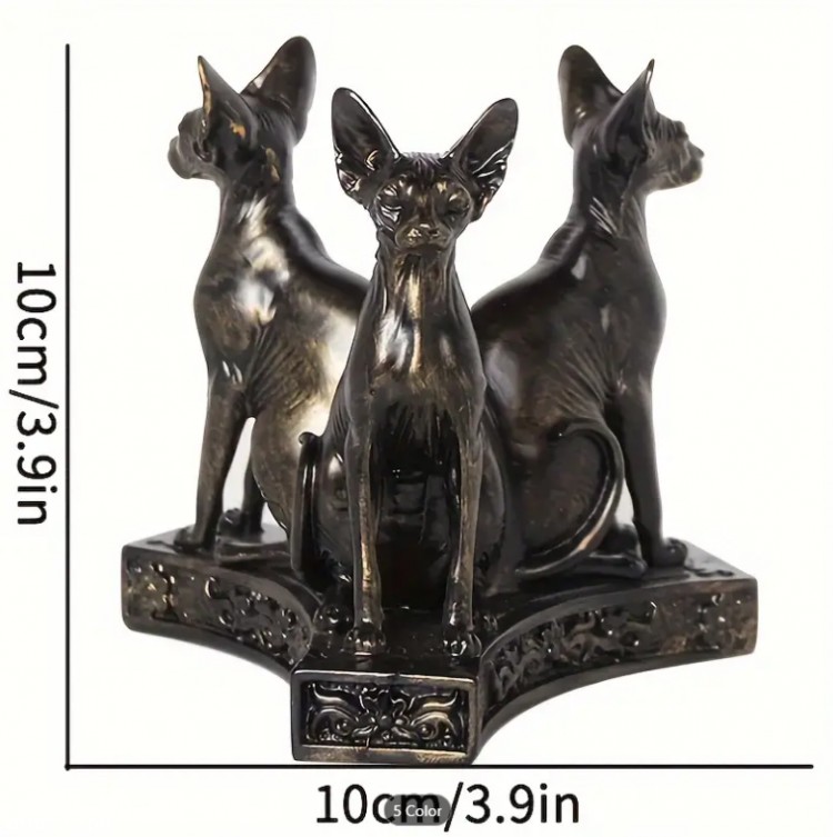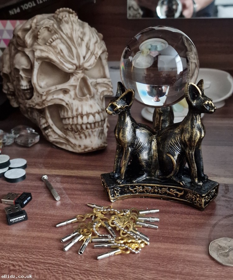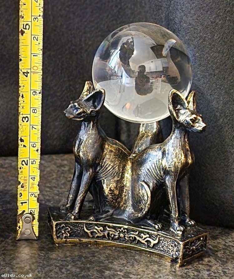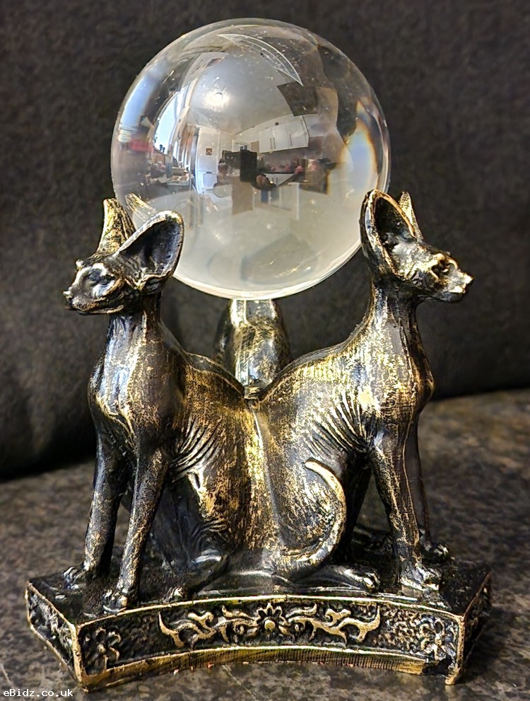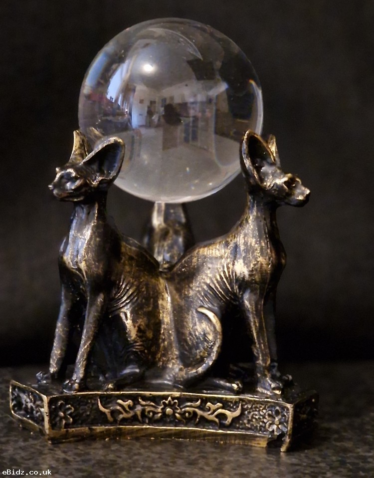 1 x Egyptian Resin Sphinx Bastet Cats Figurine Trio & Crystal Ball